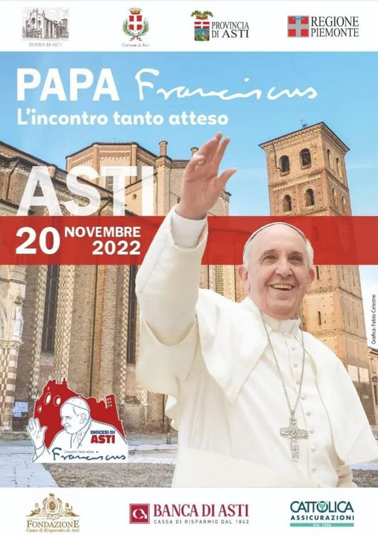 Intanto hanno cominciato ad apparire i primi cartelloni che annunciano l'arrivo del Pontefice. "Asti ti abbraccia" c'è scritto al fianco di una sorridente immagine del Papa che saluta, con la data del 20 novembre ben visibile e colorata di bianco. Sono apparse anche numerose locandine in vari punti della città che da domani, entrando nella settimana che porterà allo storico evento, vedrà nella visita di Bergoglio l'argomento più dibattuto, con una crescente attesa da parte di tutta la comunità.
