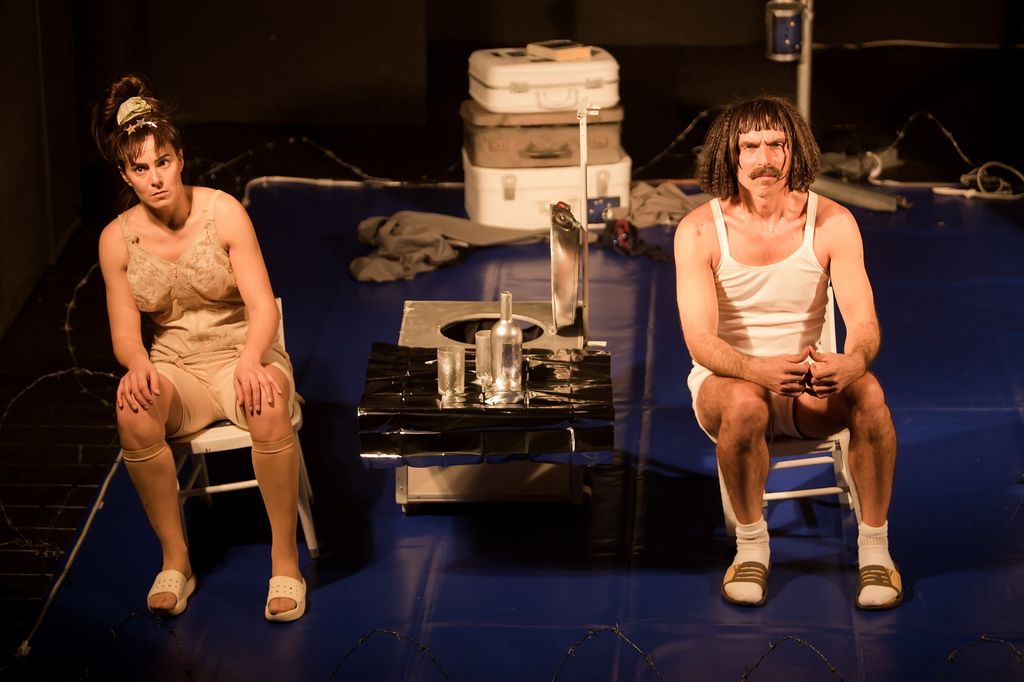 I due personaggi, vestiti glitterati e di tendenza, rispecchiano il vissuto di provincia. Presto, però, qualcosa smetterà di funzionare.