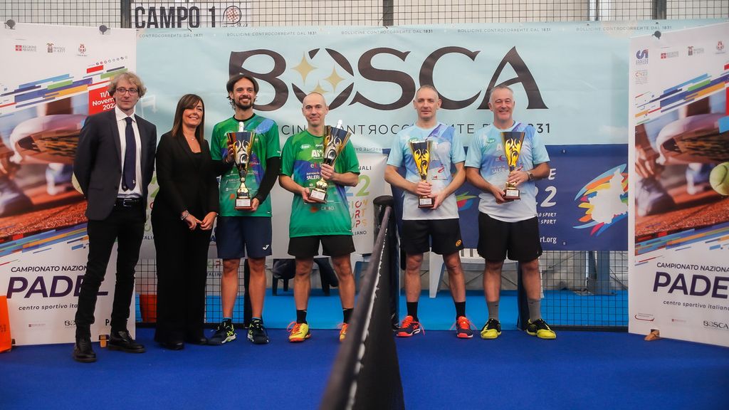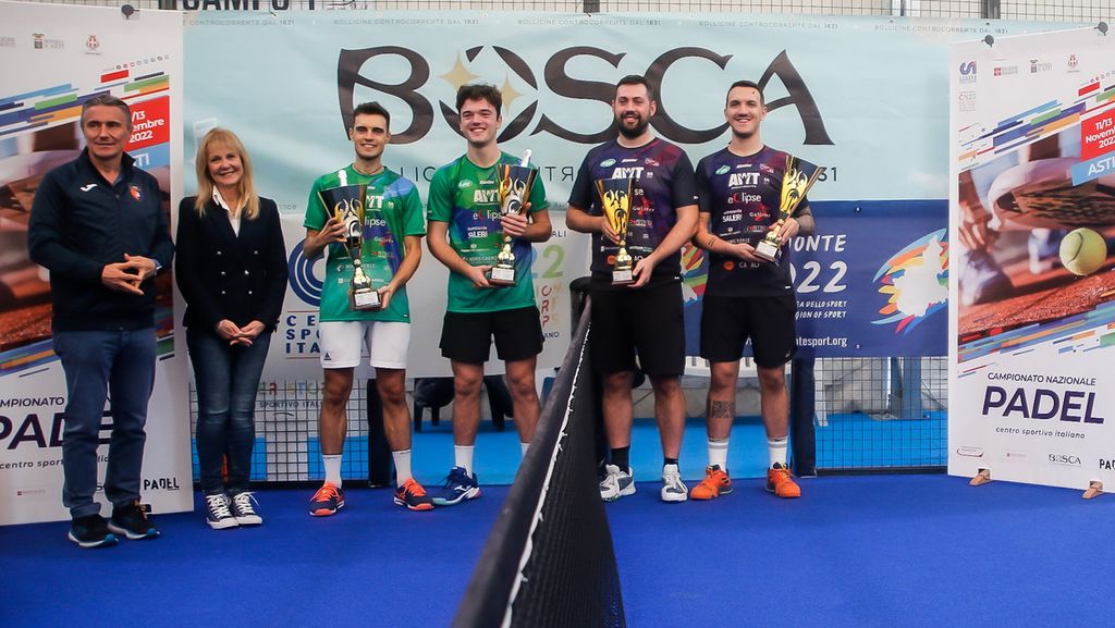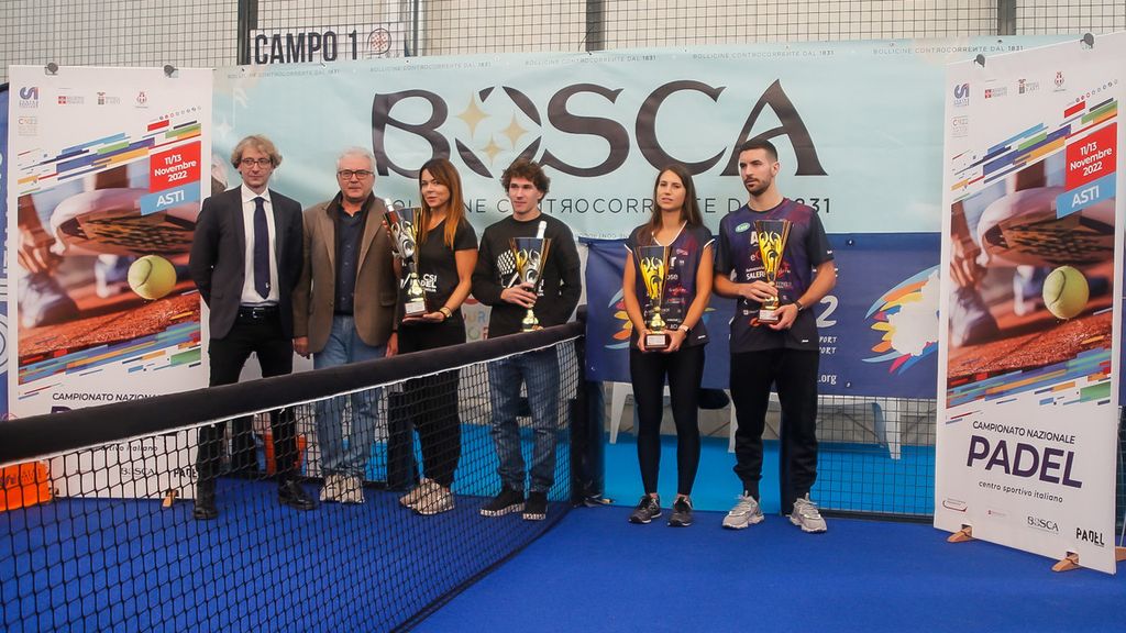 Dunque bollicine per tutti all’Asti Padel al termine delle gare. Offerte dal main sponsor Bosca, nel corso della cerimonia di premiazioni, dove sono intervenuti il presidente del CONI e del CSI Piemonte, rispettivamente Stefano Mossino e Mauro Santanera, la delegata provinciale CONI, Lavia Saracco, il presidente e la vicepresidente del CSI Asti, Beppe Basso, e Daniela Calloni; oltre a Carmine Di Pinto, coordinatore tecnico nazionale dell’intera attività sportiva del CSI.