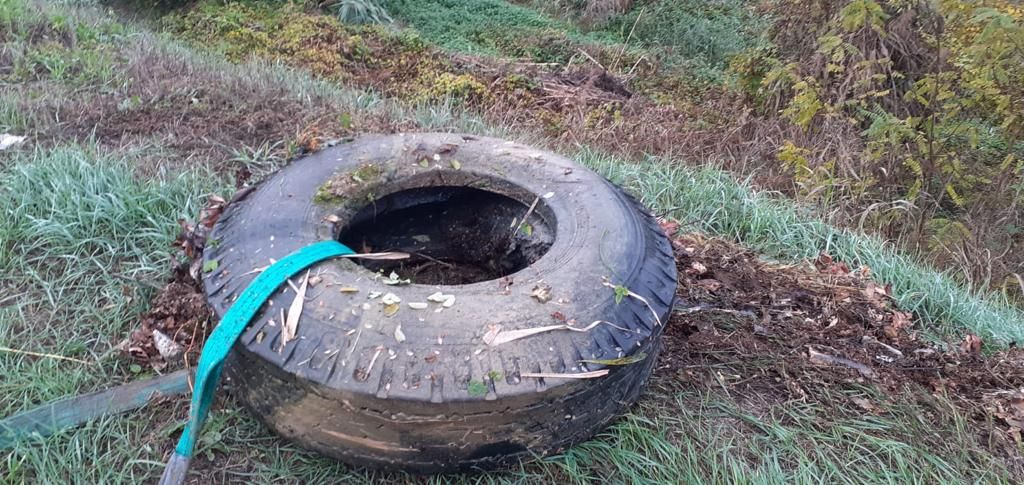 I volontari di protezione civile rimuovo copertone dal Borbore