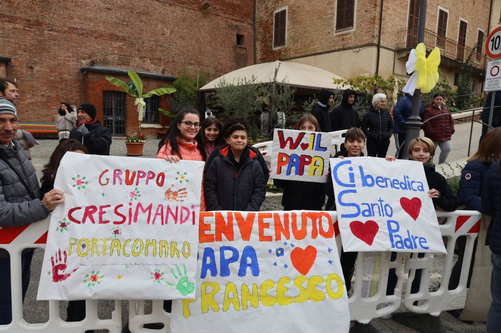 Dopo essersi recato nell'attigua chiesa e avere salutato alcuni dei presenti, il Santo Padre è stato fatto accomodare su una 500L bianca, con la quale ha raggiunto Portacomaro paese, dove ha trovato ad attenderlo una folla festante e la cugina Carla (CLICCA QUI per rileggere la nostra intervista con lei), che lo ospiterà a pranzo nel corso di un incontro privato. Successivamente, il Santo Padre, accompagnato dal sindaco di Portacomaro Alessandro Balliano, incontrerà gli ospiti della Casa di riposo del paese.