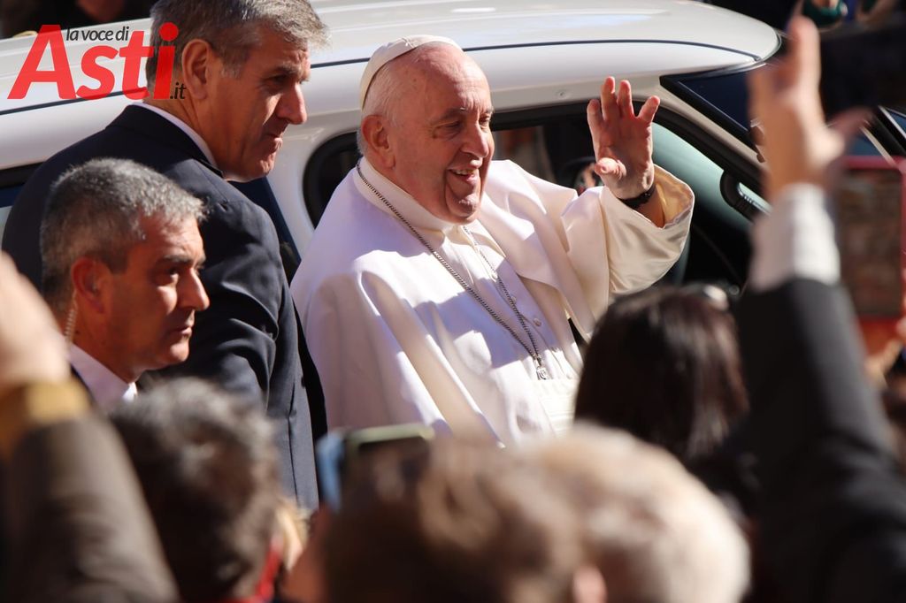 "Coraggioso questo vescovo a dire che Asti è l'inizio del mondo - scherza il Papa Grazie per la accoglienza calorosa che mi avete riservato. A l'a fami propri piasì".