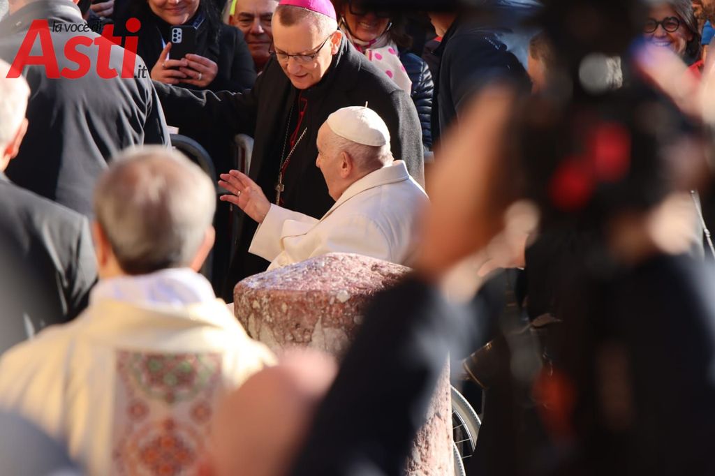 Dopo il saluto alle massime istituzioni - tra cui il presidente della Regione Alberto Cirio, il sindaco di Asti Maurizio Rasero e gli onorevoli Marcello Coppo e Andrea Giaccone i fedeli hanno atteso l'arrivo del Papa sul pulpito.