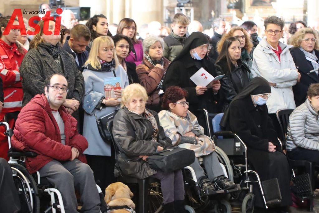 Accompagnato dal vescovo di Asti, monsignor Marco Prastaro, il vescovo emerito Francesco Ravinale ha portato il saluto a un gruppo di disabili, tra cui Vincenzo Soverino, vicepresidente nazionale e referente locale dell’Aisla Onlus, e Renata Sorba dell’APRI Onlus - presente con il suo cane guida.