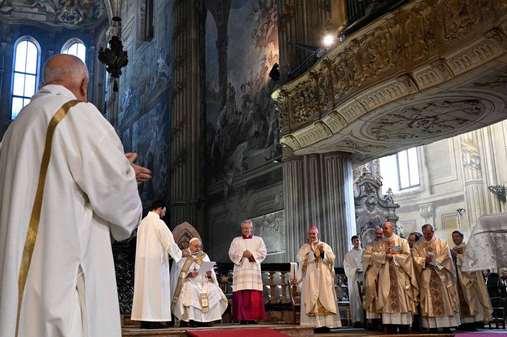 Giunto sul pulpito, il Pontefice ha conferito l’accolita all’unico seminarista della Diocesi astigiana, ovvero il 24enne Stefano Accornero, riferendosi al quale ha invitato a “pregare per Stefano, ma anche per la Chiesa di Asti che è gran parte composta da vecchi come me”. Aggiungendo: “Come posso celebrare il Signore di ogni cosa se non diventa anche il Signore della mia vita? Tu (Stefano, ndr.) che cominci oggi la strada del sacerdozio non dimenticartelo mai. Dio non osserva la tua vita per un solo momento, non ti dedica uno sguardo fugace. Lui resta lì ad abbracciarti e dirti anche nel silenzio che puoi salvarti così come sei, con la tua storia, le tue miserie, i tuoi peccati".