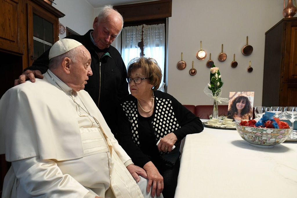 Nel pomeriggio il Papa si è spostato a Tigliole (CLICCA QUI per rileggere l'articolo), dove vivono l’altro cugino Franco Travo e la moglie Delia, e naturalmente anche qui ha trovato ad attenderlo una folla festante e molti bambini, cui il Pontefice ha concesso molti sorrisi e carezze esortando gli adulti presenti a “fare figli”. Quindi il Papa è entrato nell’abitazione dei cugini, duramente provati dalla prematura scomparsa della figlia Emma, con i quali Francesco si è intrattenuto un paio d’ore prima di rientrare in Vescovado, dove ha cenato in compagnia del vescovo di Asti monsignor Marco Prastaro.