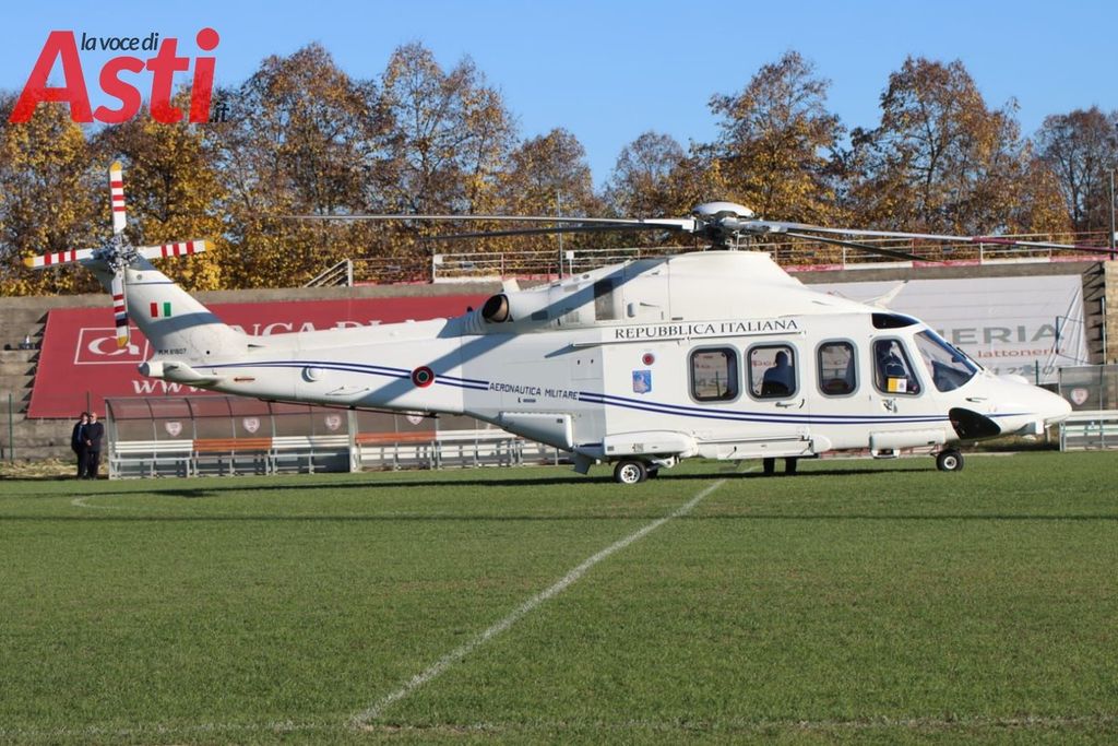 Alle 11.39 di sabato l'arrivo a Portacomaro Stazione, 15.27 di ieri, domenica 20 novembre, la partenza con l'elicottero dallo stadio di Asti.