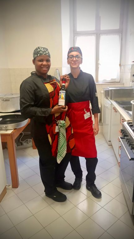 Il pranzo è stato cucinato anche da Success, 24enne nigeriana, vittima di tratta di esseri umani e diventata cuoca grazie all'aiuto della Piam Onlus di Asti. Con lei ha cucinato la chef Monica Pio.