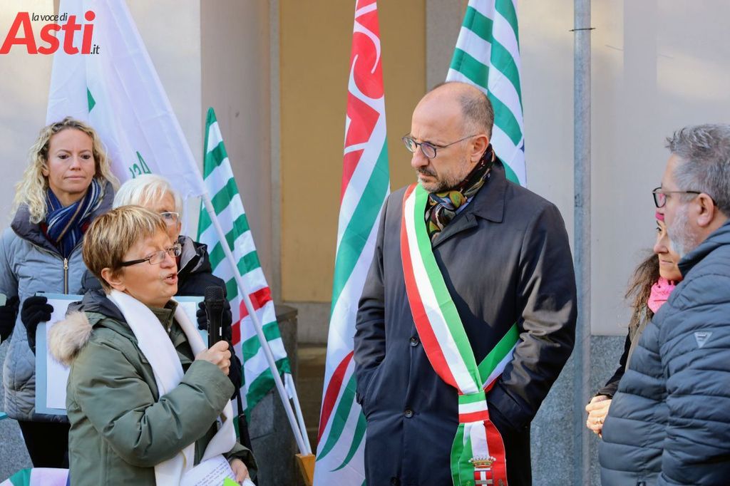 Al centro delle letture, femminicidi, diritti negati, violenza agli anziani. Con gli organizzatori anche il sindaco di Asti, Maurizio Rasero.