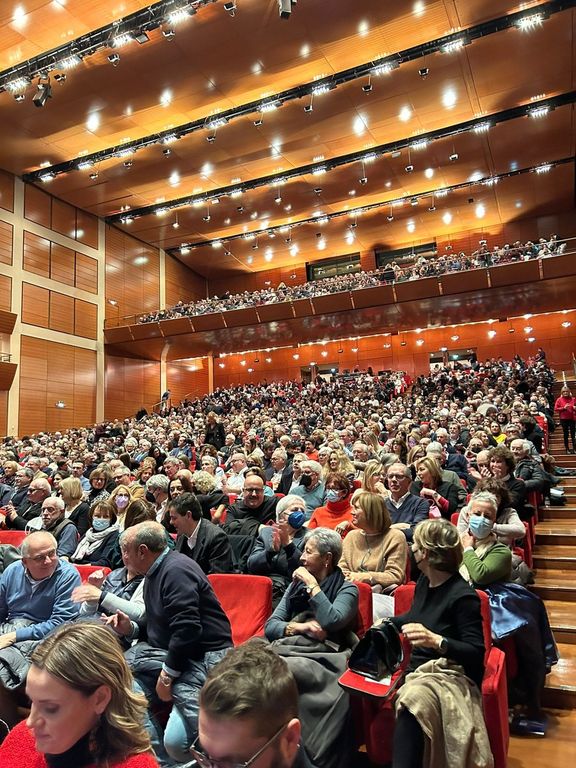 “E’ stata una serata strepitosa, con un Paolo Conte in splendida forma che ci ha regalato due ore di concerto indimenticabili e con un pubblico calorosissimo, che affollava l’Auditorium del Lingotto in ogni ordine di posti e accompagnava le canzoni del Maestro scandendone i tempi con il battito delle mani e certificando il proprio giubilo con scroscianti e interminabili applausi”: il presidente del Rotary Club Asti, Luigi Florio, commenta con queste parole la serata organizzata a scopo benefico dal sodalizio astigiano giovedì 1° dicembre all’Auditorium Giovanni Agnelli di Torino, in cui Paolo Conte ha cantato brani tratti dal suo ultimo albo “Live at Venaria Reale” e storici successi quali Genova per noi, Impermeabili, Aguaplano, Diavolo Rosso, Sotto le stelle del Jazz, per non citarne che alcuni.