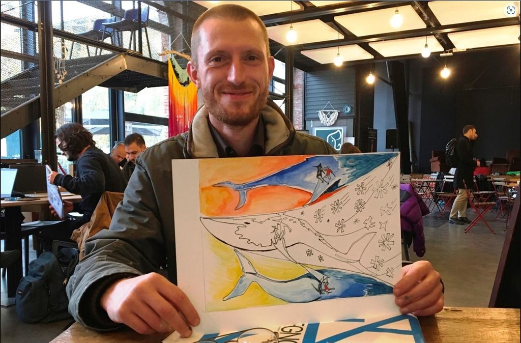 Lanciata da Laura Nosenzo, autrice del libro "Fossili e Territori", l'idea sulla contaminazione artistica della Natività ha trovato forma nella creatività di Bisaccia, che ha disegnano tre figurine di balena da ritagliare e sistemare nei presepi. Due sagome sono a colori (c'è anche Pinocchio), ma quella che spicca maggiormente è in bianco e nero e fluttua tra le stelle: i bambini sono invitati a vivacizzarla con matite e pennarelli.