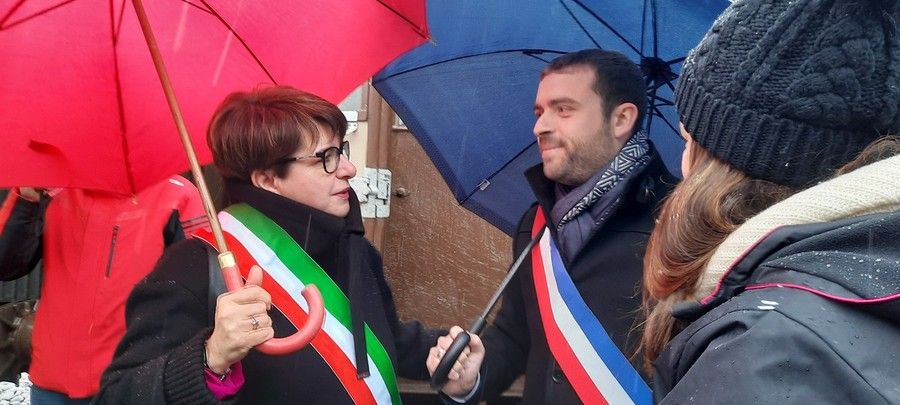 La neve ha reso ancora più suggestiva la celebrazione del gemellaggio fra Borgo San Dalmazzo e Breil sur Roya. Una festa posticipata di due anni a causa del Covid, per ricordare i venti anni di questa collaborazione internazionale