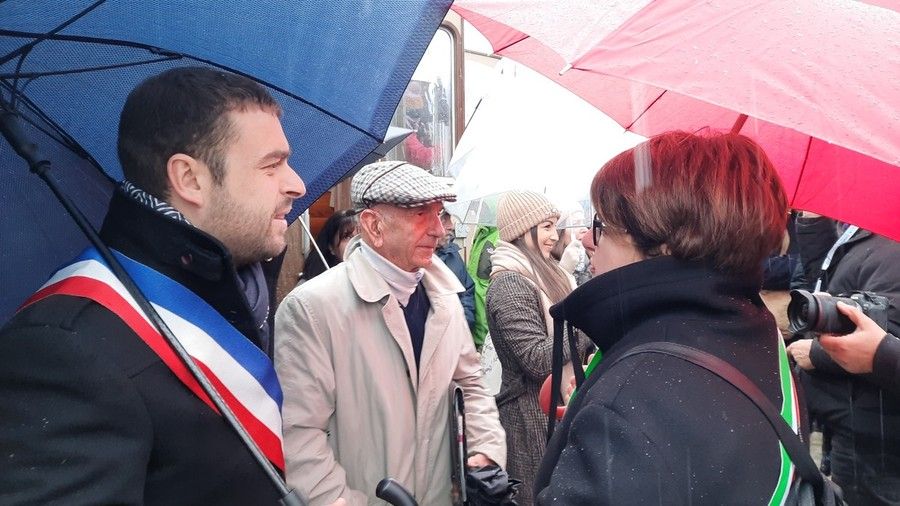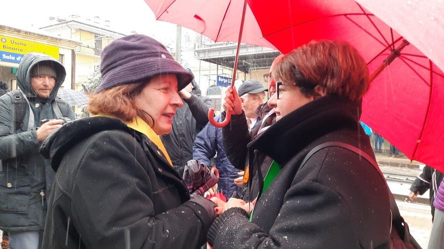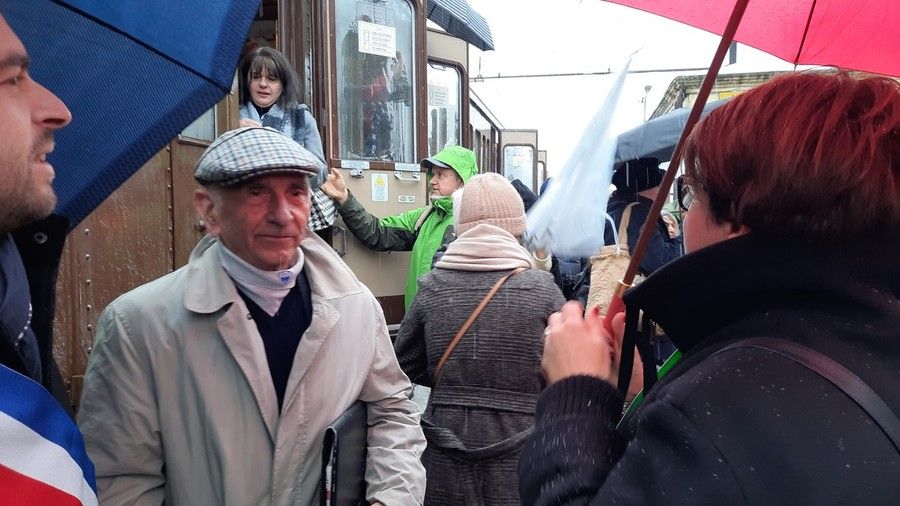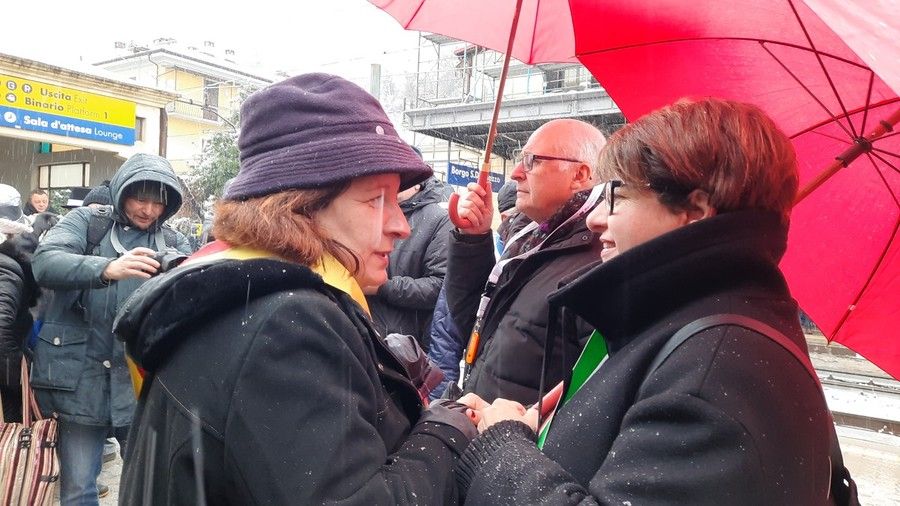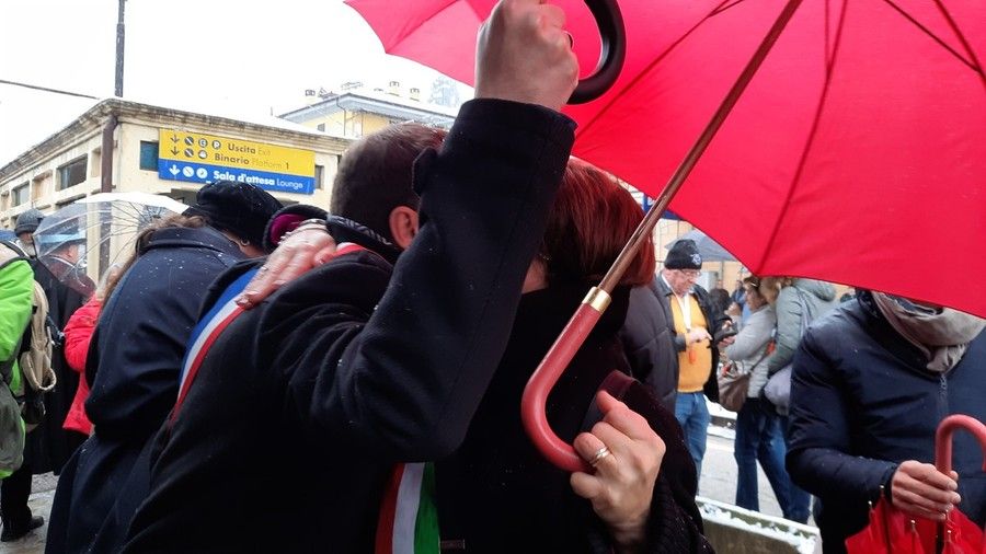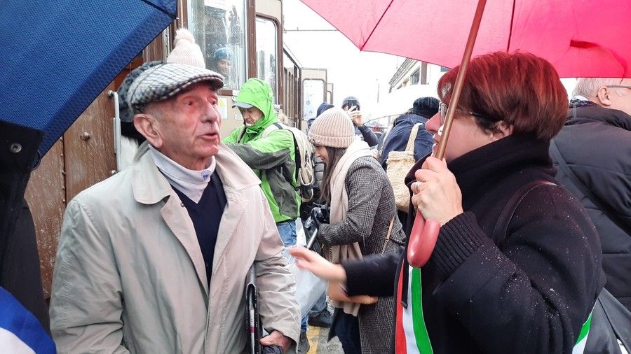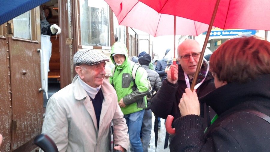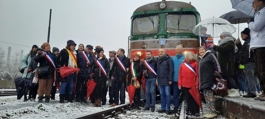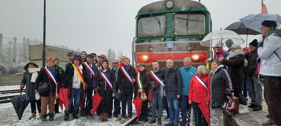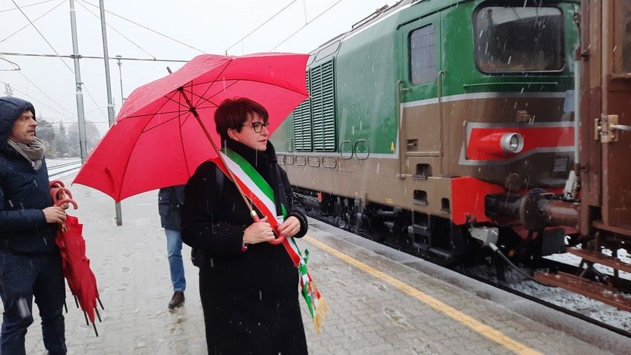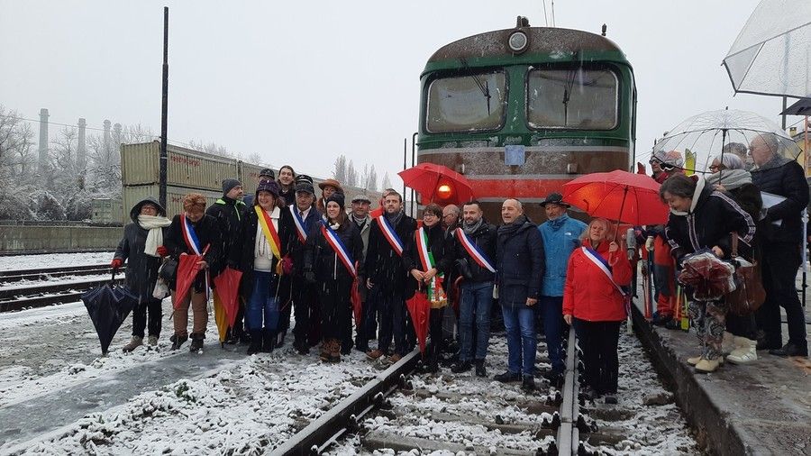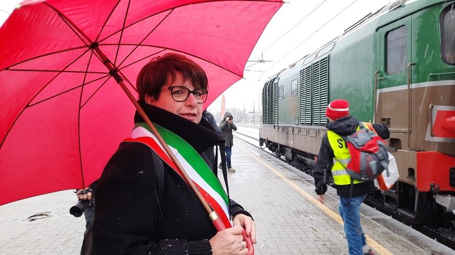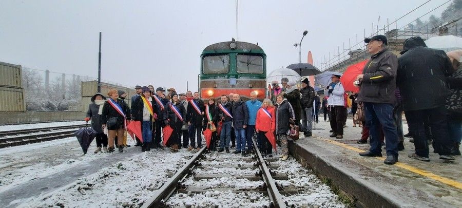 La sindaca di Borgo Roberta Robbione ha accolto sul terzo binario il collega di Breil Sébastien Olharan, sceso dal treno storico insieme a tutti i primi cittadini della Val Roya.