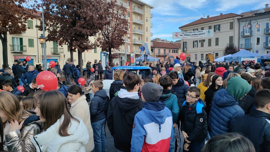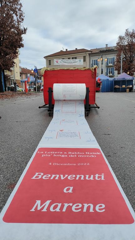 Babbo Natale e la sua slitta hanno impiegato oltre un’ora e mezza per srotolare lungo le vie di Marene, le migliaia di letterine arrivate da tutta Italia per confezionare la lettera natalizia più lunga del Mondo. Si, ben 3.841 metri di stupende frasi scritte da bambini di tutte le età e province d’Italia. Una lettera che con la sua importante lunghezza ha voluto rendere omaggio al Monviso, il Re di Pietra.