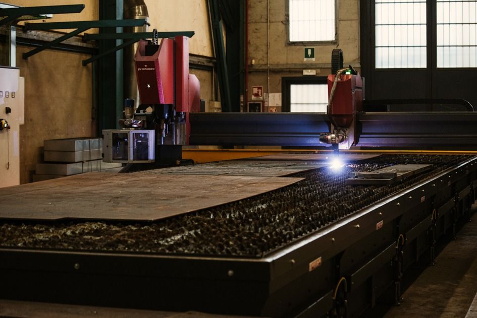 L’azienda oggi si distribuisce su una superficie di oltre 7.000 mq, di cui 4.500 mq sono destinati ai locali produttivi, 600 mq ca. al magazzino, 2.000 mq a piazzali per deposito merci; il reparto produttivo risulta essere completa in tutte le sue fasi sia per la carpenteria leggera che per la carpenteria pesante, a partire dalla lavorazione delle travi e lamiere con impianti di ultima generazione (LINEA AUTOMATICA DI FORATURA E TAGLIO A CNC FICEP ORIENT 1001 ORB, IMPIANTO DI TAGLIO TERMICO PLASMA 3D CON SISTEMA DI FORATURA E FILETTATURA ISO40 12 UTENSILI PROMOTEC KTEVO 2500X3000 MM, CESOIE 4 e 6 MT. GASPARINI, PRESSE PIEGATRICI NOVASTILMEC e FARINA, CALANDRA MG, CURVA PROFILI MG, PUNZONATRICI FICEP, SEGATRICI FMB, SCANTONATRICE FIM, TORNIO), all’assiematura e saldatura con impianti di ultima generazione.