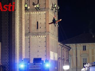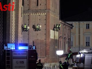 Vigili del fuoco sulla Cattedrale di Asti. È un'esercitazione del Nucleo Saf! [FOTOGALLERY]