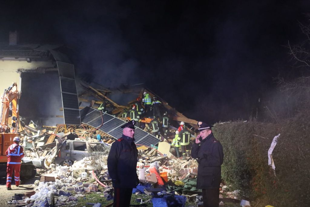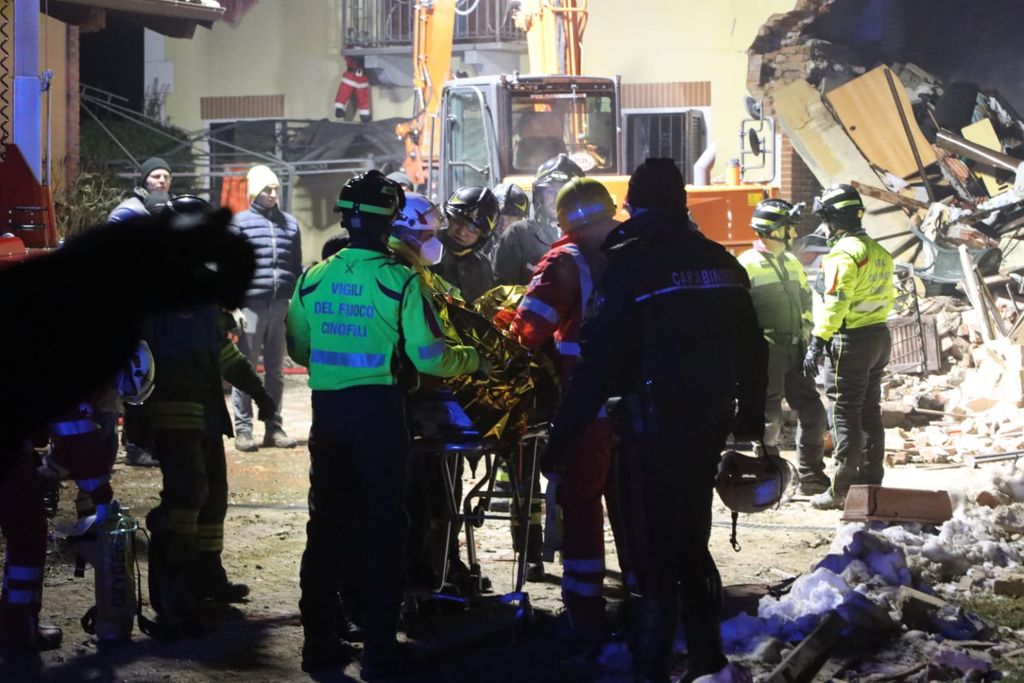 Due persone ustionate sono state portate in ospedale in gravi condizioni. La persona estratta dalle macerie è viva ed è stata soccorsa. Ancora sotto le macerie alcuni cani