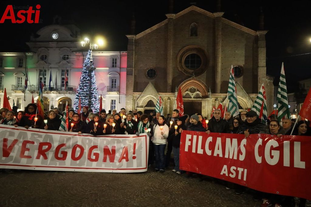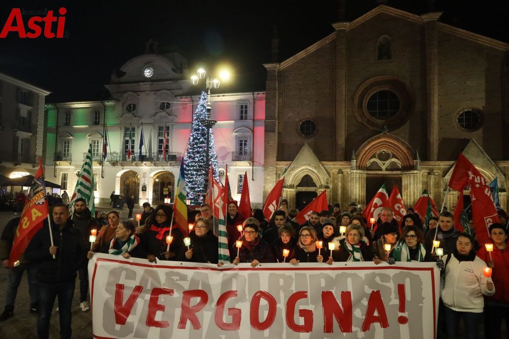 Dopo la conferma che domani la Casa di riposo Città di Asti chiuderà i battenti per sempre, è in corso la partecipata fiaccolata indetta da Cgil Cisl e Uil.