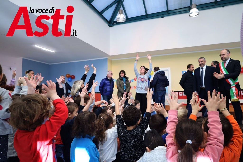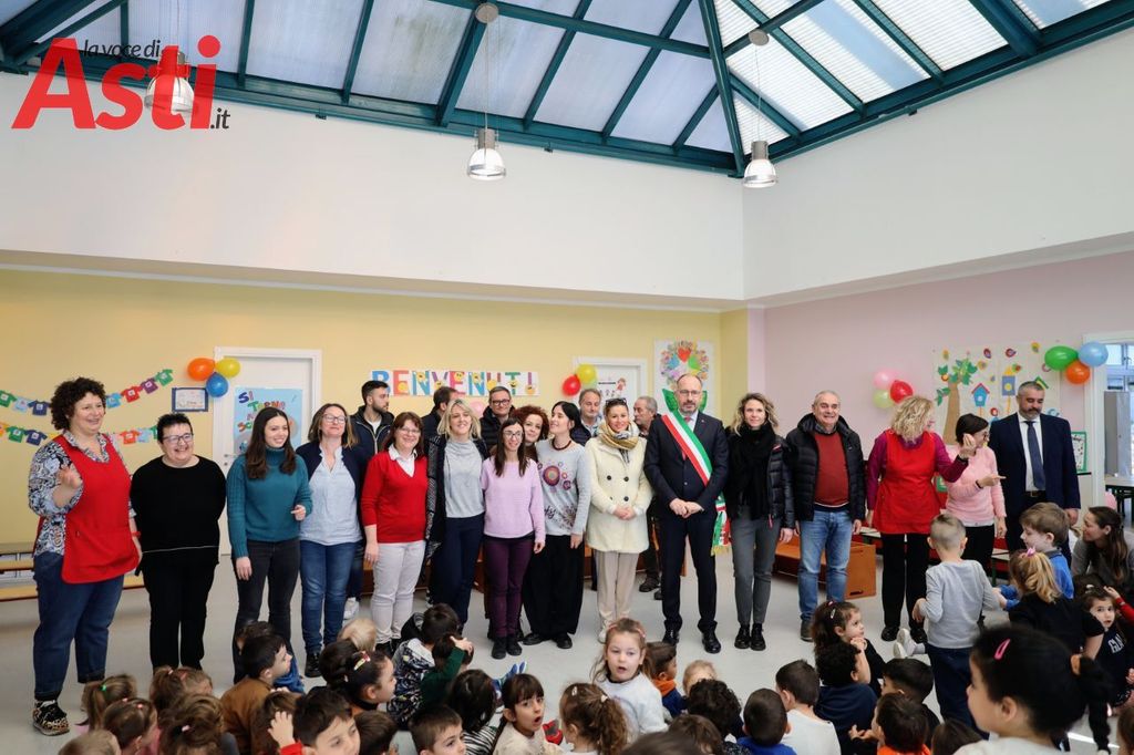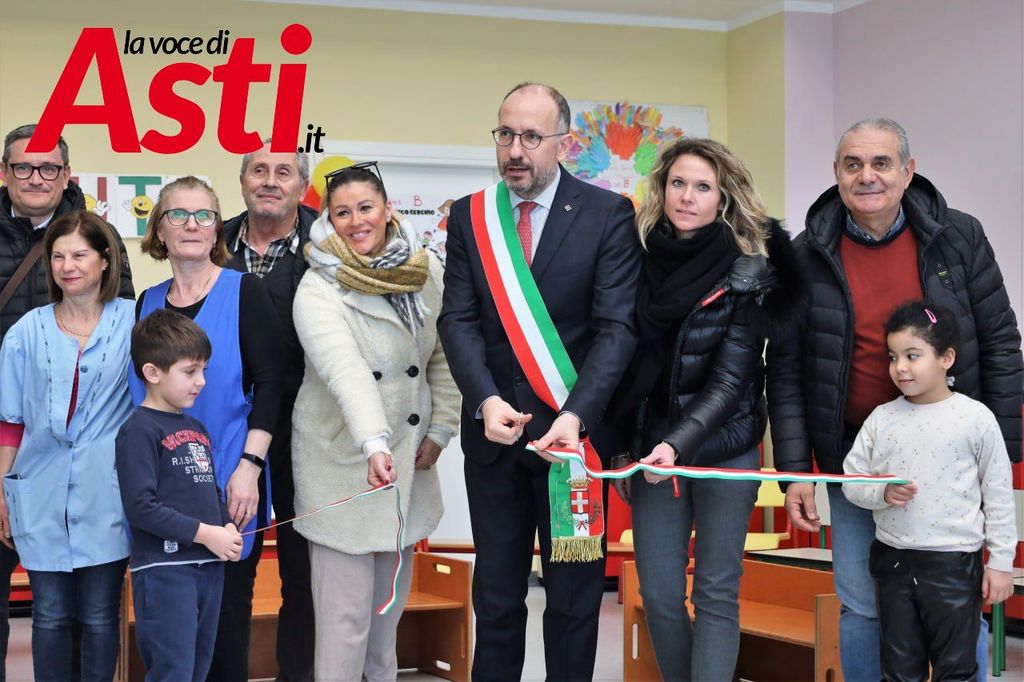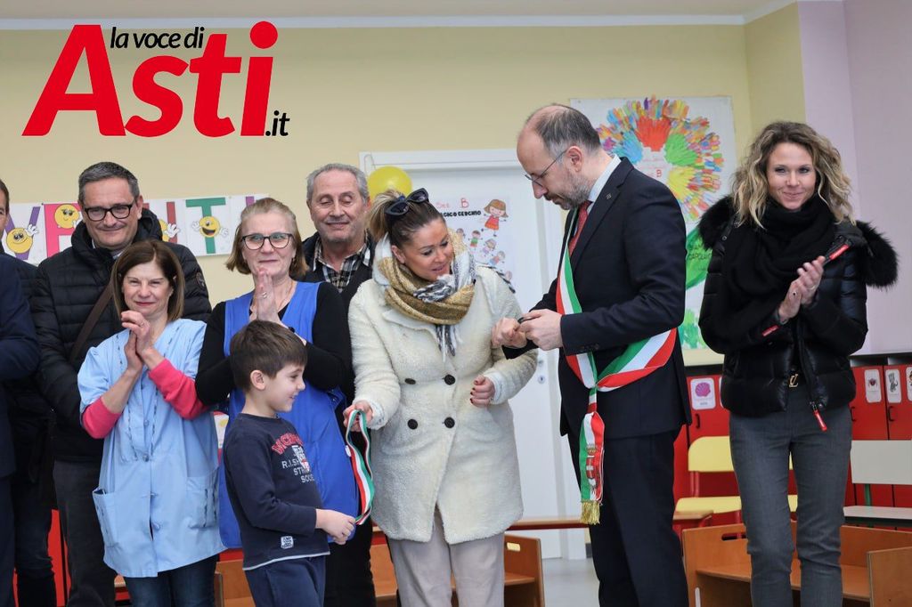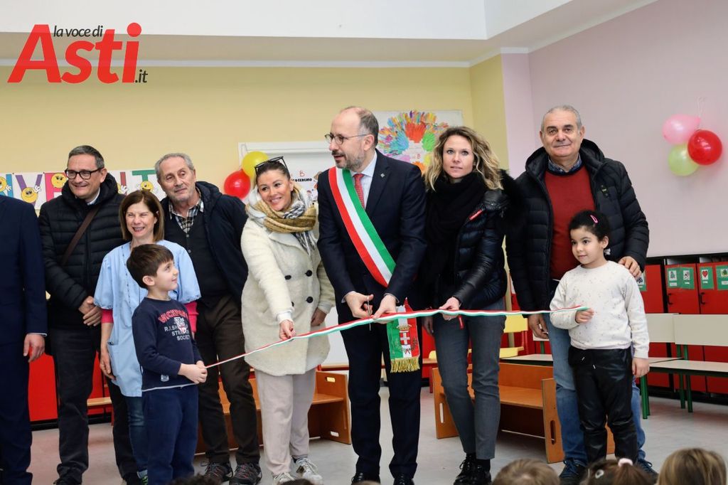 Taglio del nastro, questa mattina, alla rinnovata scuola materna De Benedetti, anche se, in realtà, le lezioni per il 150 bimbi iscritti, sono già iniziate ieri.