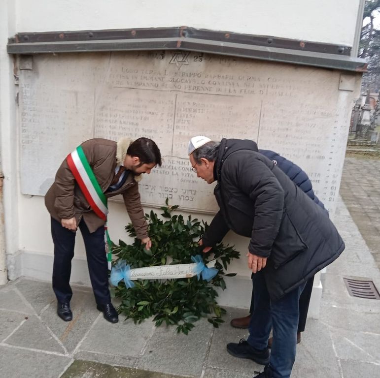 Alla conclusione, una corona d'alloro dell'Associazione Italia Israele è stata deposta all'ingresso del cimitero ebraico, davanti alla lapide che ricorda gli ebrei astigiani vittime della Shoah.