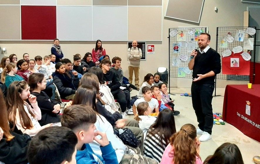 Con queste parole il professore-scrittore Enrico Galiano si è rivolto agli oltre duecento studenti della scuola media V. Alfieri di San Damiano, portando loro una carica di entusiasmo e ottimismo, oltre che di ironia e simpatia.