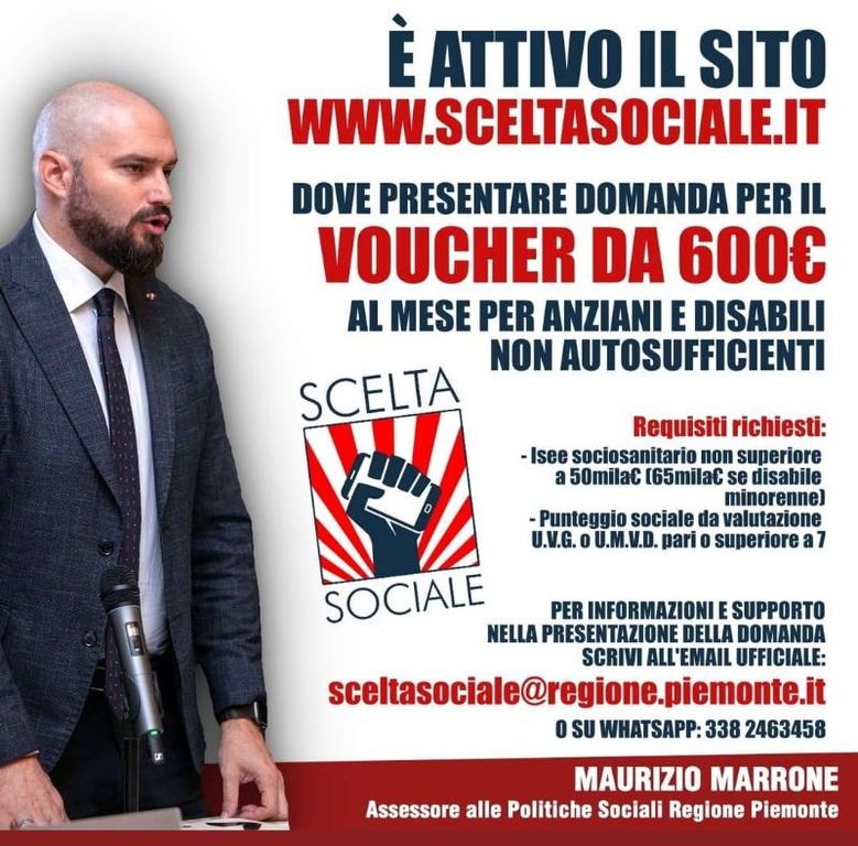 Per il buono domiciliarità maggiori informazioni sono consultabili su https://www.regione.piemonte.it/web/temi/diritti-politiche-sociali/politiche-sociali/scelta-sociale-buono-per-domiciliarita