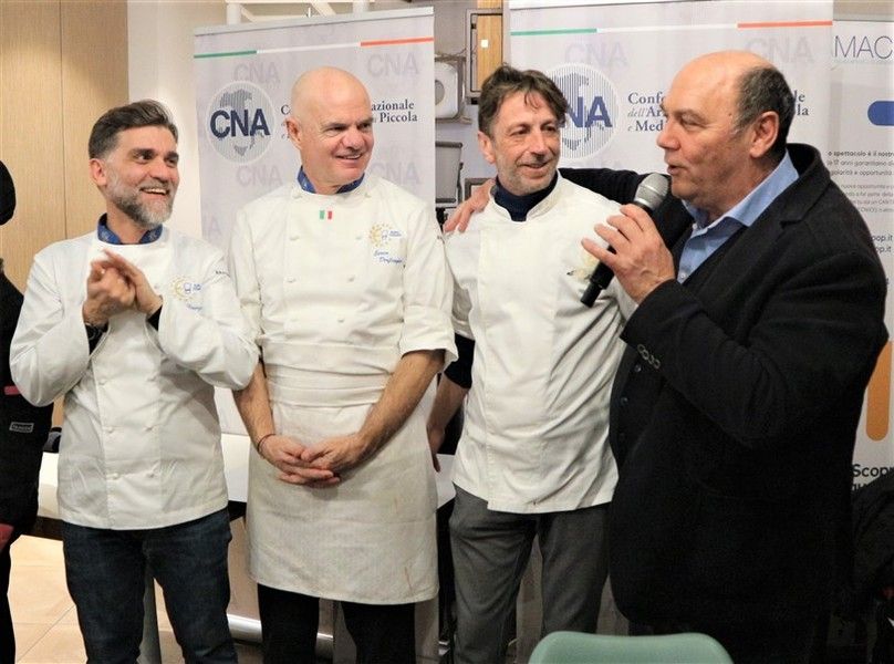 Una serata che ha visto la partecipazione di altri chef aderenti a Cna che tutti insieme hanno dato vita ad una cena di alta cucina e accompagnata da ottimi prodotti del territorio: i vini della Cantina Maffone, Sansteva e Poggio dei Gorleri, le olive denocciolate e l’olio Musicale del Frantoio Santagata d’Oneglia, i fiori eduli dell’azienda Ravera Bio.