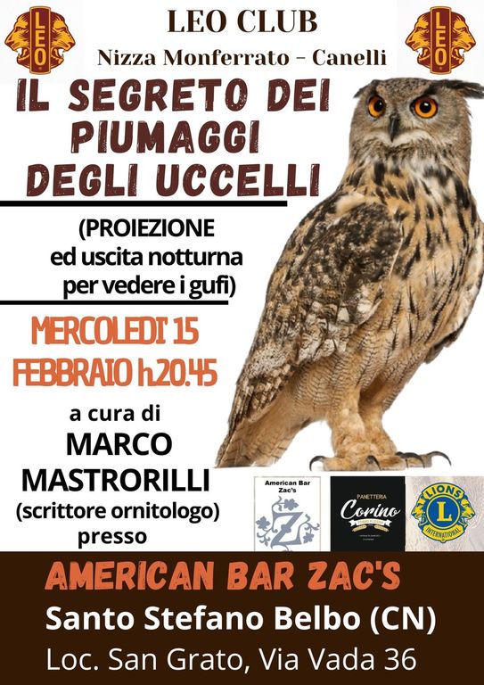 "Il segreto dei piumaggi degli uccelli", conferenza tenuta dall’illustre ornitologo Marco Mastrorilli, massimo esperto mondiale di rapaci notturni, autore di 25 libri.