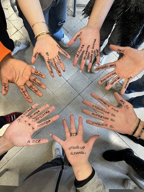 Matteo: “Accogliendo la proposta della professoressa Lisa Medici, dopo l’incontro del 1° dicembre in Aula Magna, abbiamo tradotto le 5 D in tutte le lingue che si parlano nelle nostre famiglie, successivamente abbiamo curato velocemente la scenografia e abbiamo registrato”.