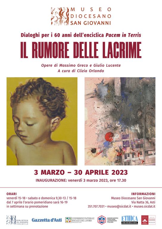 Il primo “dialogo”, che farà da cornice a tutti gli altri, sarà la mostra “Il rumore delle lacrime” che sarà inaugurata venerdì 3 marzo alle ore 17.30 presso il Museo Diocesano San Giovanni.