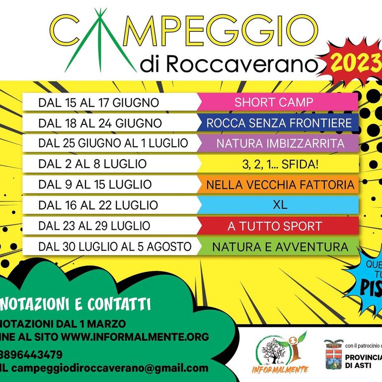 La Provincia di Asti, in collaborazione con Informalmente A.S.D., ha annunciato l'apertura delle iscrizioni per la stagione estiva 2023 del Campeggio di Roccaverano, che lo scorso anno ha visto la partecipazione ai turni di vacanza di oltre 600 tra bambini e ragazzi.