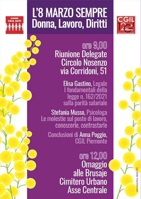 Per far sì che l'8 marzo non sia solo una giornata di festa, le donne della Cgil Asti, hanno organizzato due iniziative.