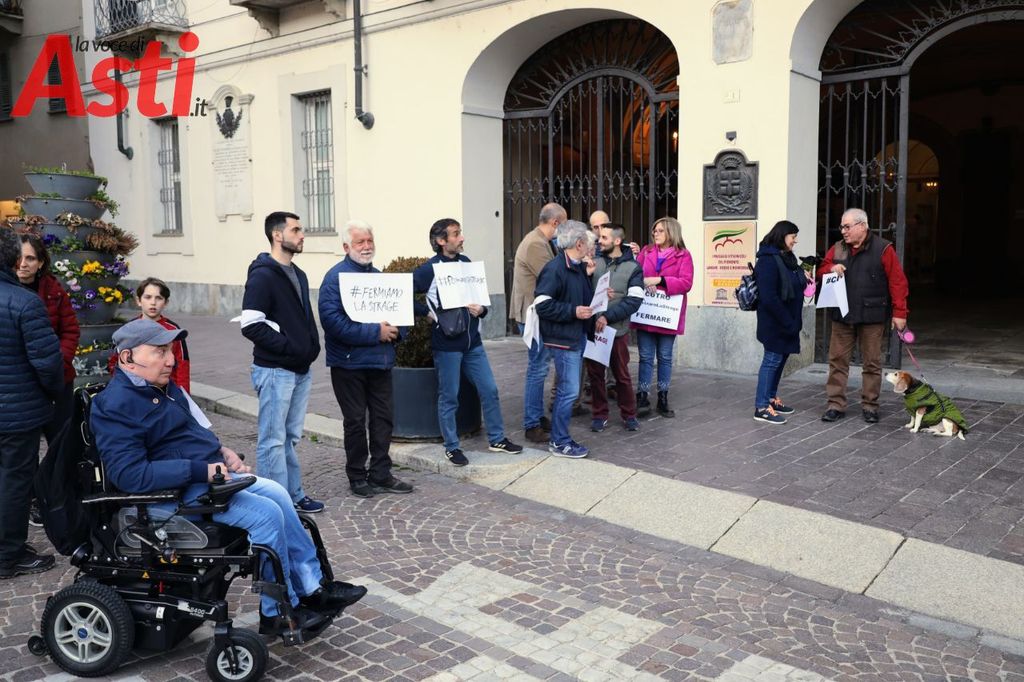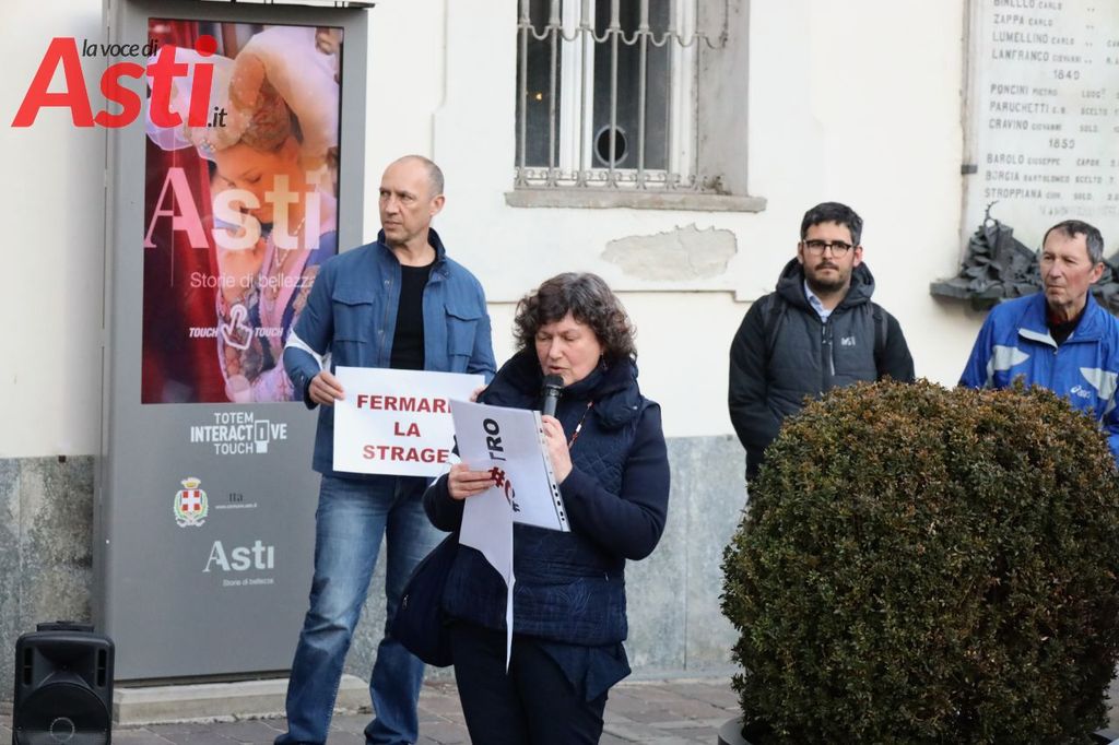 Prima dell'incontro, in piazza San Secondo, si è tenuto il flash mob "Fermare la strage"