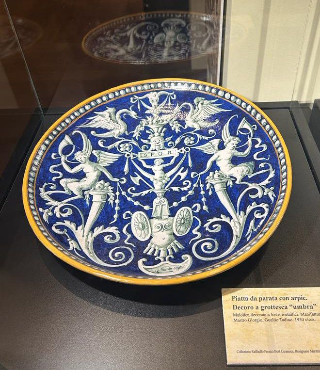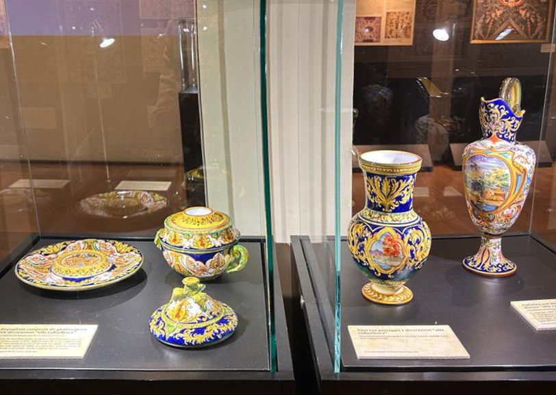 Nelle vetrine si possono ammirare splendide maioliche dipinte “alla raffaellesca”, tramandate da Maestri ceramisti di Faenza, Urbania, Deruta e Firenze.