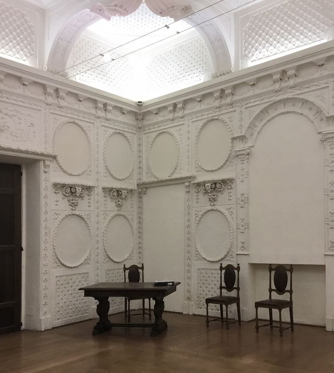 Il gioco interattivo prosegue nell’affascinante Sala degli Stucchi dove, nella semioscurità, soffitto e pareti si animano, facendo apparire bizzarri personaggi tratti da grandi cicli decorativi rinascimentali.