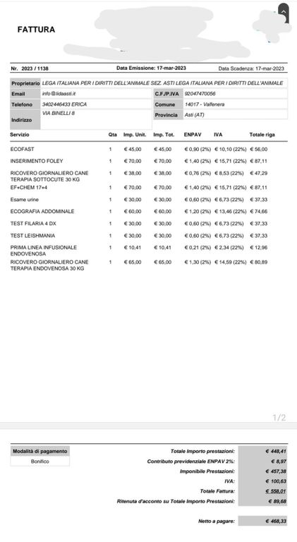 Anche in questo caso, la fattura (ed è solo la prima) per la sola lupetta è a carico dell'associazione.