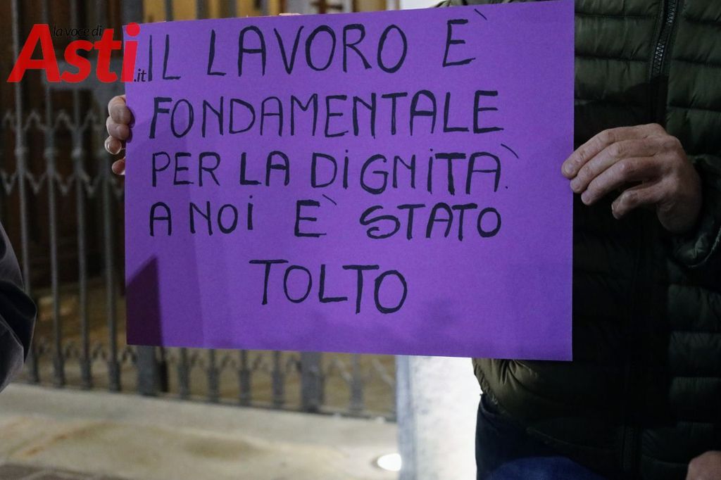 Una parte dei lavoratori, invitata a parlare dal consigliere Mario Malandrone con il Coordinamento Asti Est, è rimasta sotto il Comune in presidio.