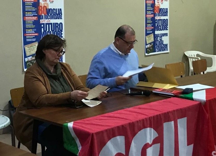 L'evento è stato organizzato dallo SPI CGIL, dall'ISRAT e dalla CGIL. Dopo i saluti di Pier Mario Coltella (segretario Generale dello SPI di Asti), sono intervenuti Luca Quagliotti (Segretario Generale della CGIL astigiana) e la dottoressa Nicoletta Fasano, neo Direttrice dell’ISRAT astigiano che hanno illustrato venticinque anni di Storia italiana ed astigiana. Si è parlato anche della nascita della CGIL nel 1944 e delle lotte studentesche ed operaie degli anni '60.