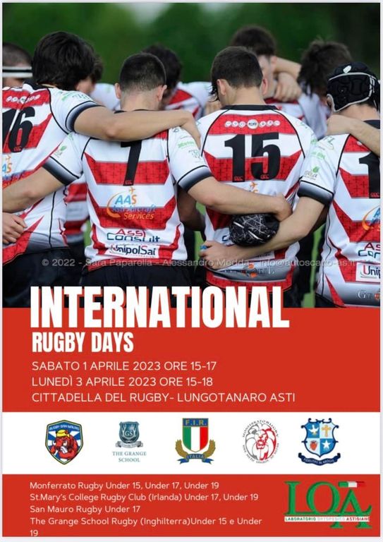 Lunedì 3 aprile alle 15 giocheranno L’Under 17 del Monferrato contro il St Mary’ e alle 16,30 le due formazioni U19. Il Club ha invitato gli atleti di Alba, Novi, Pasturana e Piacenza che scenderanno in campo con i giocatori astigiani durante la manifestazione che vedrà al via anche il San Mauro.