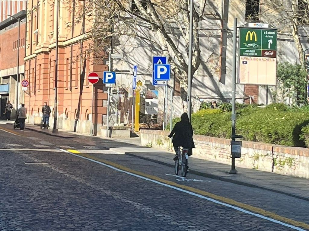 Nonostante non sia ancora formalmente accessibile (poiché restano da rifinire alcune cose in vista della effettiva ‘apertura’ prevista per l’inizio della settimana prossima) e, sui social abbondino i commenti negativi o sarcastici (ad esempio, di chi sottolinea la scomodità di percorrere in bicicletta un percorso sul porfido), la nuova pista ciclabile di corso Alfieri – transitabile, lo ricordiamo, esclusivamente nel senso di marcia da piazza I Maggio a piazza Alfieri – può vantare anche degli estimatori.