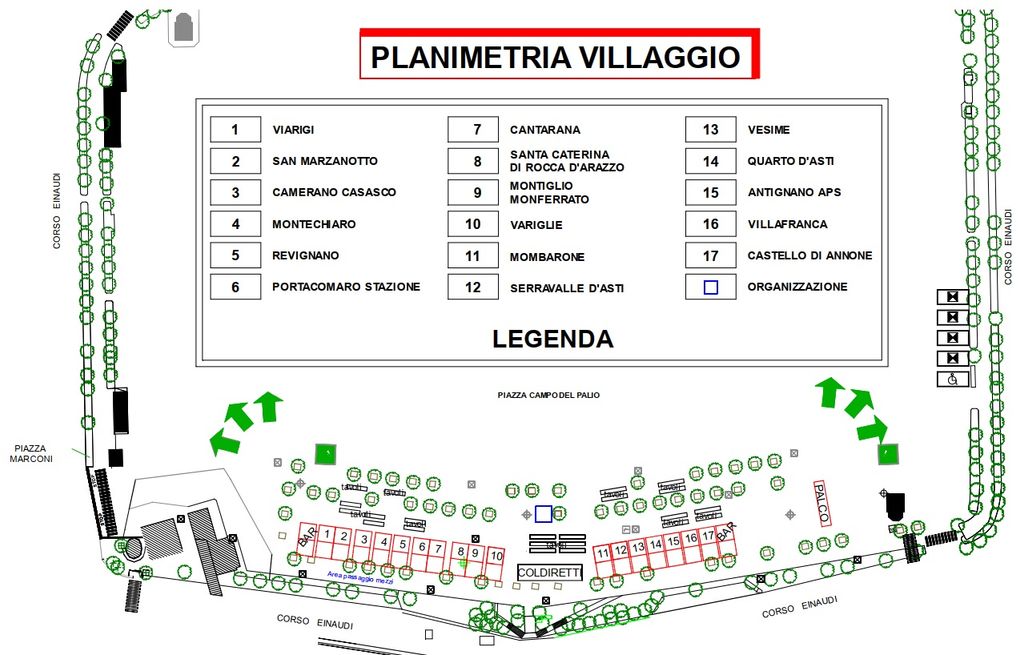 Ben 17 Pro loco che si posizioneranno in piazza Campo del Palio come riportato nella planimetria presente in questo articolo, contribuendo alla riuscita di un evento attesissimo.
