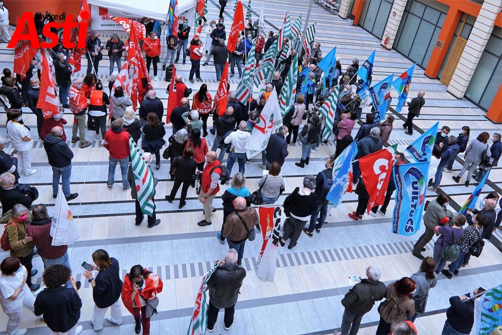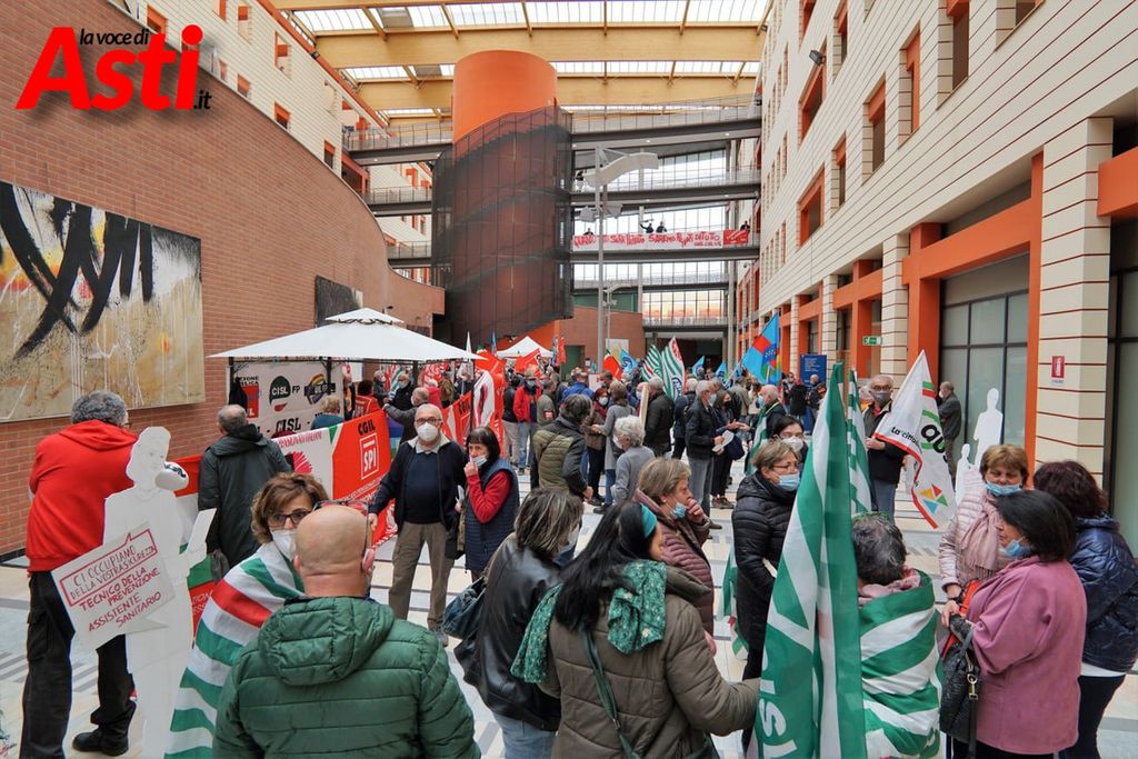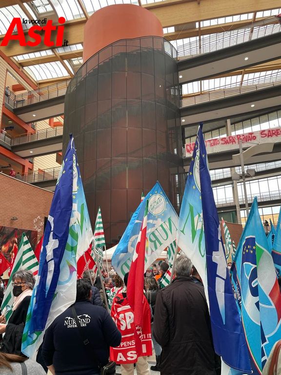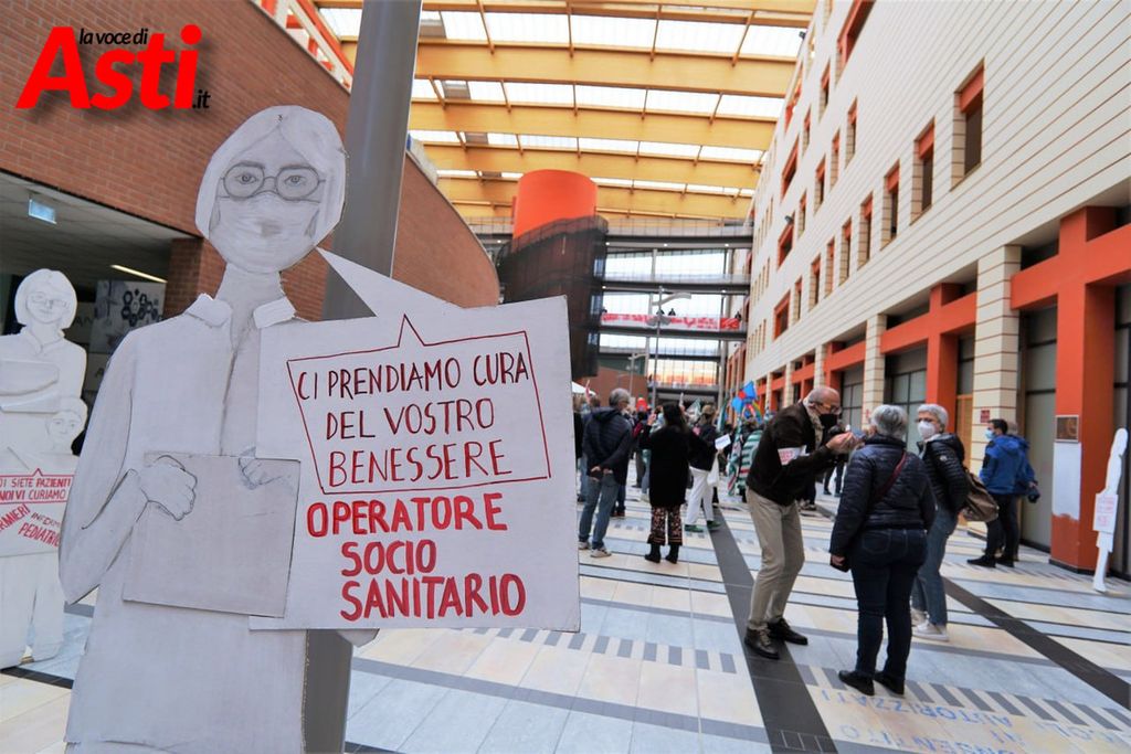 Fino alle 14, all'ospedale di Asti, nella piazza interna, si sta svolgendo il flash mob organizzato da Cgil, Cisl e Uil, cui hanno aderito anche il NurSind e in Nursing Up.