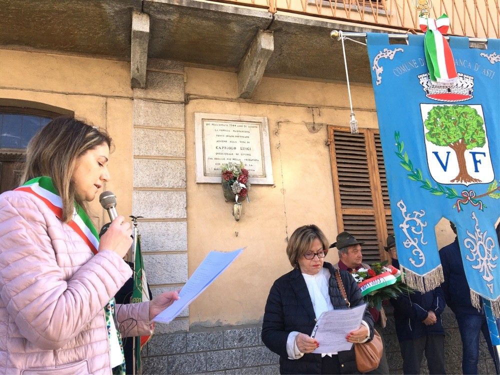 Sotto al balcone di Baldichieri dove nel 1944 fu impiccato il partigiano Faustino Novara, la pronipote Barbara ha chiuso la cerimonia del 25 aprile ricordando: "Il nemico principale è oggi la mancanza di memoria". E davanti a un altro balcone, a Villafranca, dove la stessa sorte toccò a Luigi Capriolo, l'omaggio a chi ha sacrificato la vita per la libertà è venuto anche dalle note di Bella ciao e dell'Inno di Mameli suonate dalla Banda Municipale.