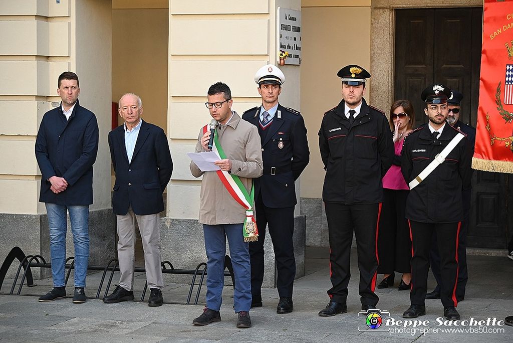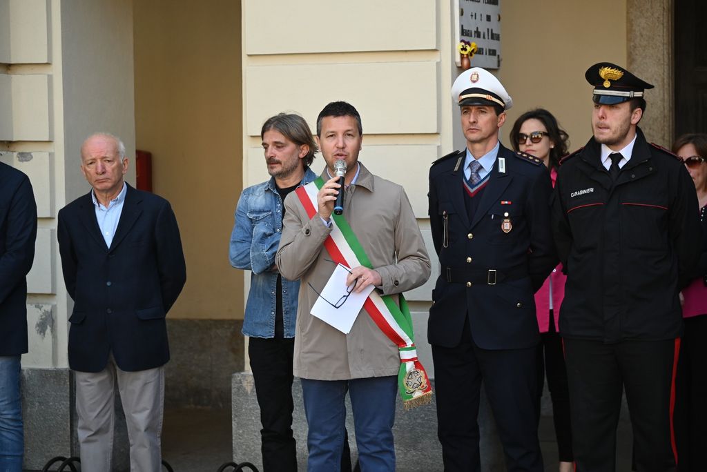 Il sindaco Simone Nosenzo (con la fascia blu in rappresentanza della Provincia, con la fascia tricolore il vice, Pierpaolo Verri), ha detto: "È una festa che fa riflettere. Da molti contestata e molto discussa. Ma noi stiamo celebrando uomini e persone che hanno dato la vita per i nostri diritti. La città ha avuto un ruolo molto importante nel mosaico di guerra venendo insignita della medaglia d'argento al valor militare. Noto con grande piacere che i numeri aumentano di anno di anno. Chi ha forza di ripartire come noi non può non rifarlo partendo dalla propria storia. Non posso che chiedere un applauso per i sacrifici che la guerra ci ha preso. Viva l'Italia e buona festa della Liberazione".