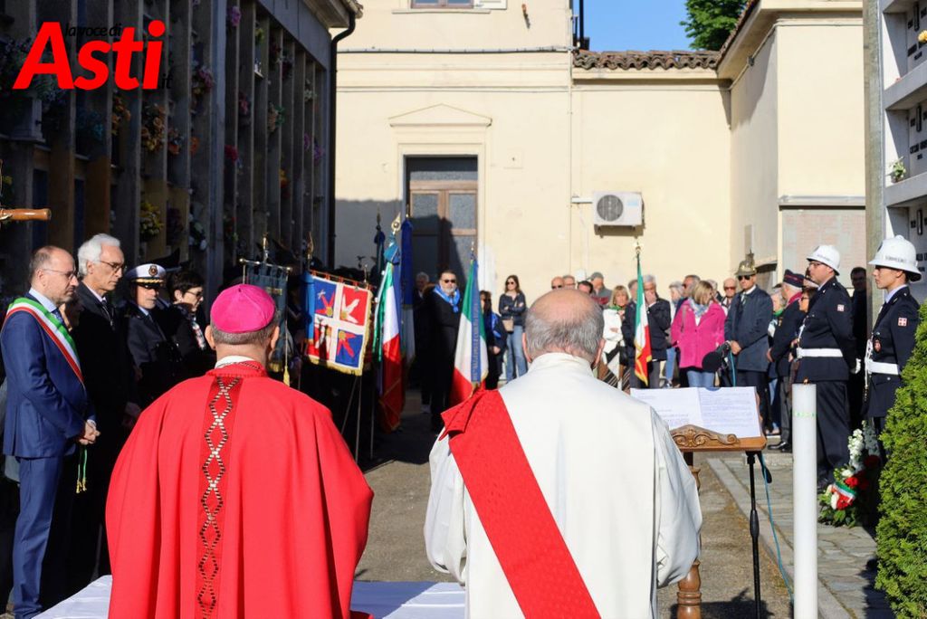 Un 25 aprile partecipatissimo anche nell'Astigiano, che si è aperto, nel capoluogo, alle 8.30 con la celebrazione della Santa Messa al Sacrario dei Caduti per la Liberazione presso il Cimitero Cittadino di Viale Don Bianco, officiata dal vescovo di Asti monsignor Marco Prastaro. A seguire omaggio alla tomba del comandante partigiano Francesco Rosso “Perez”, primo Presidente dell’A.N.P.I. di Asti.