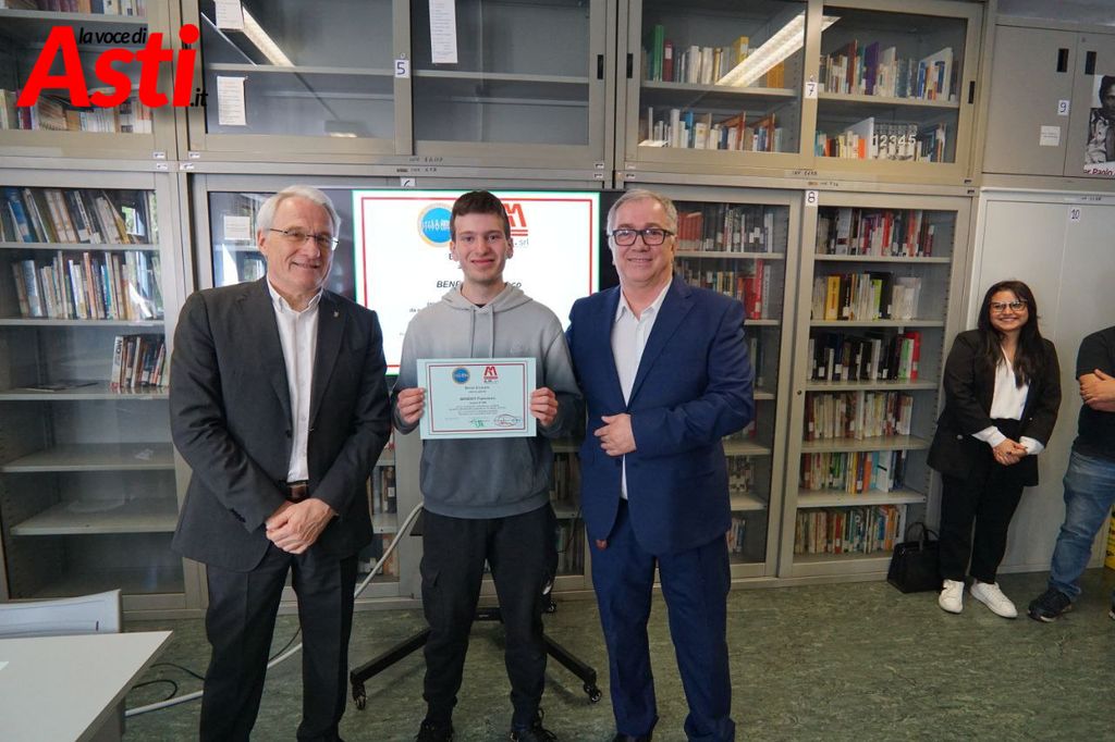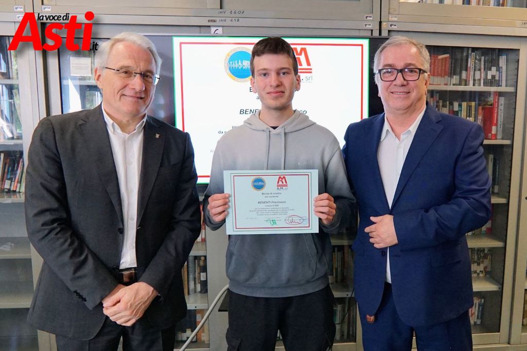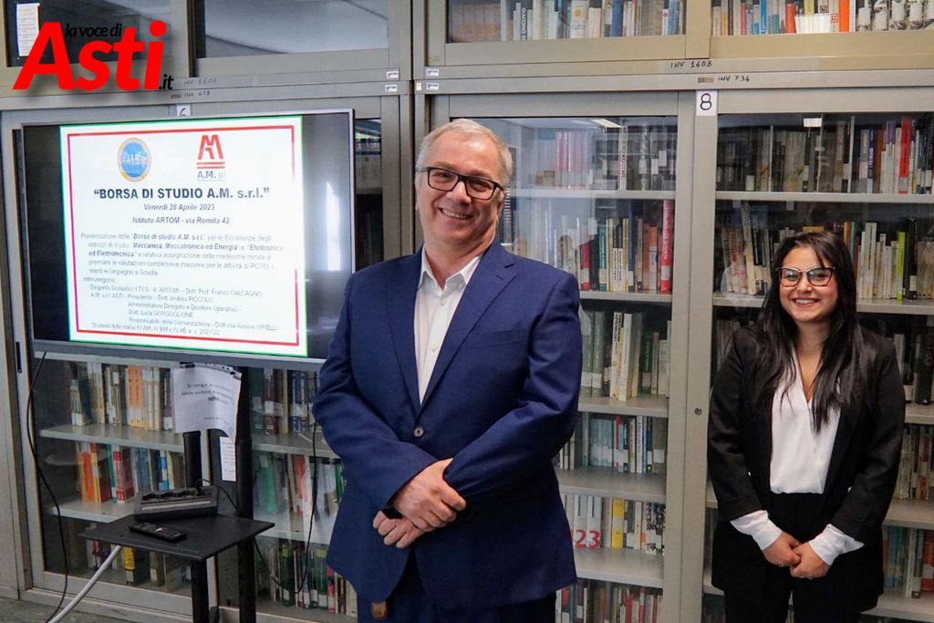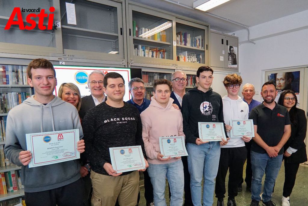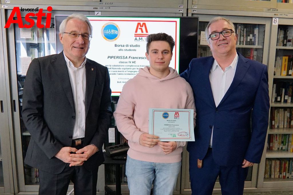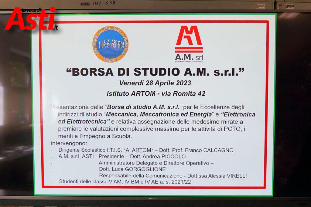 L'Artom di Asti oggi ha attribuito una borsa di studio per meriti lavorativi a 5 studenti che hanno svolto l'alternanza scuola presso l'azienda AM, raggiungendo una valutazione massima da parte della stessa azienda e una media scolastica superiore all'otto.