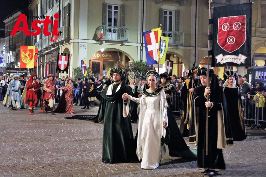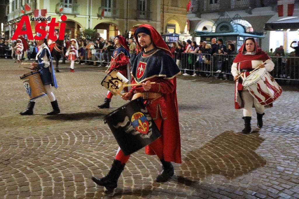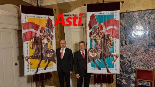 I drappi sono opera del Maestro Lorenzo Livorsi, studente del liceo artistico Benedetto Alfieri che ha vinto il concorso di bozzetti indetto dal Comune di Asti lo scorso novembre.
