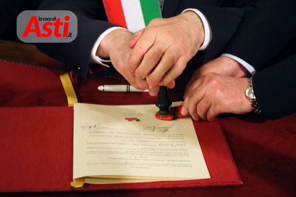 Sala consiliare gremita, questa mattina, per la firma del trattato di gemellaggio tra Asti e Nanyang.