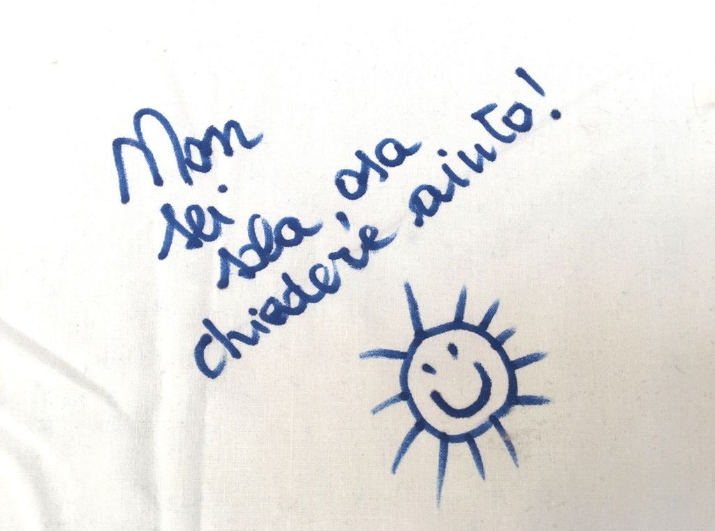 A lei e a tutte le donne violate l'invito a non rassegnarsi e a reagire: "Sei più forte di quello che pensi! Chiedi aiuto", "Coraggio", "Basta bavagli". Scritti come pensieri ad alta voce: "Prendetevi cura prima di voi stesse, poi pensate agli altri, sempre", perché "L'amore vero non conosce violenza" e con l'orgoglio (anche maschile) di sottolineare: "Devono sapere che siamo nati da una donna!!".