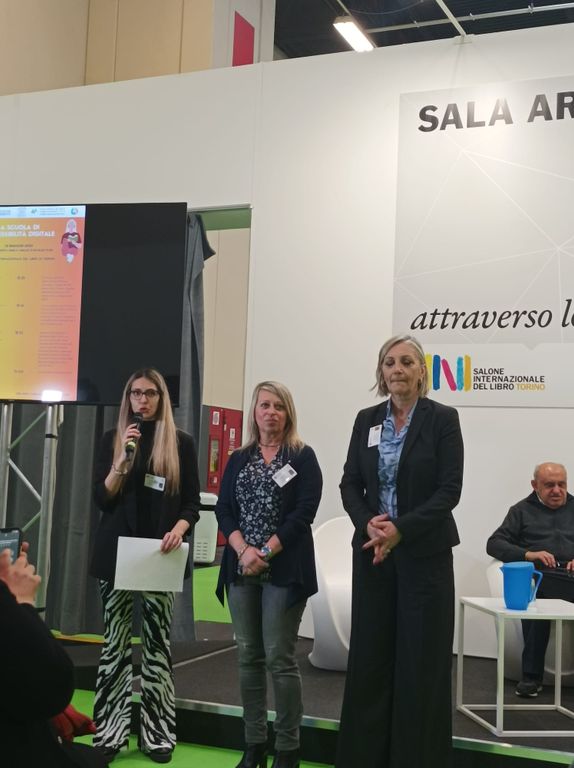 “Un esempio di buone pratiche e delle iniziative scolastiche, nell’ambito delle attività di educazione civica e alla cittadinanza attiva” ha presentato la professoressa Chiara Cerrato, referente inclusione e cittadinanza dell’Artom e componente della CRPO” sono quelle portate avanti nel nostro istituto in questi anni; dal giornale scolastico in edizione speciale sulle pari opportunità, trascritto in braille dalla Vicepresidente UICI di Asti Elena Canale, alla realizzazione dell’audiolibro “Bella per sempre”, antologia di autrici varie, a cura della professoressa Cristina Rossella Barisone e degli studenti Edoardo Pezzuto, Pietro Franco, Thomas Cappelli e Anas Laniche della sede di Canelli che sono diventati donatori di voce ma anche portatori di un forte messaggio di sensibilizzazione contro la violenza sulle donne e il femminicidio. Un ringraziamento va a nome di tutti al professor Salvatore Infanti, ex studente e ora nostro docente, per tutto il supporto tecnico che ha fornito per la realizzazione di questo audiolibro.”